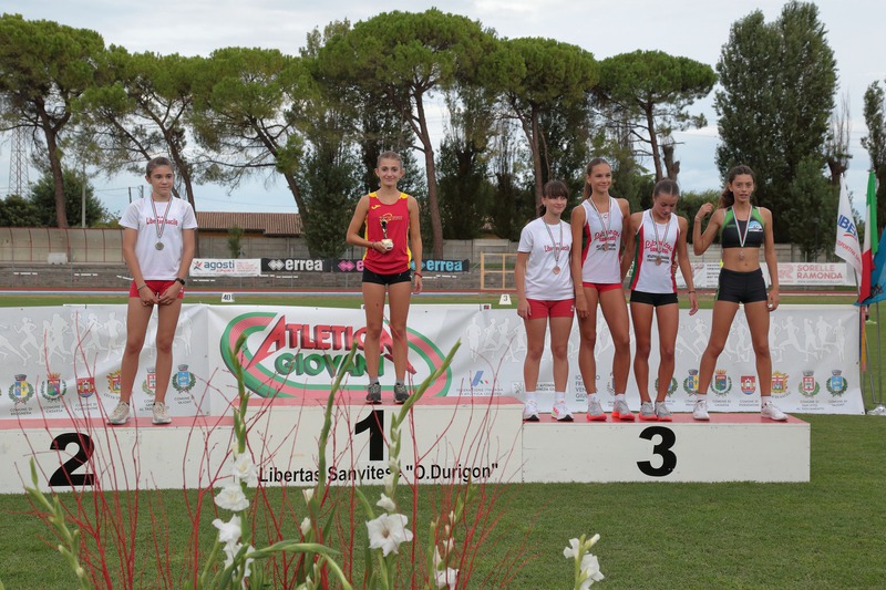 importante il suo contributo nella staffetta 4*100 friulana che vince con un notevole 42.39. I 100m Allieve vedono l'ostacolista Lucrezia Picci' che chiude terza in 13.39; terzo posto pure per